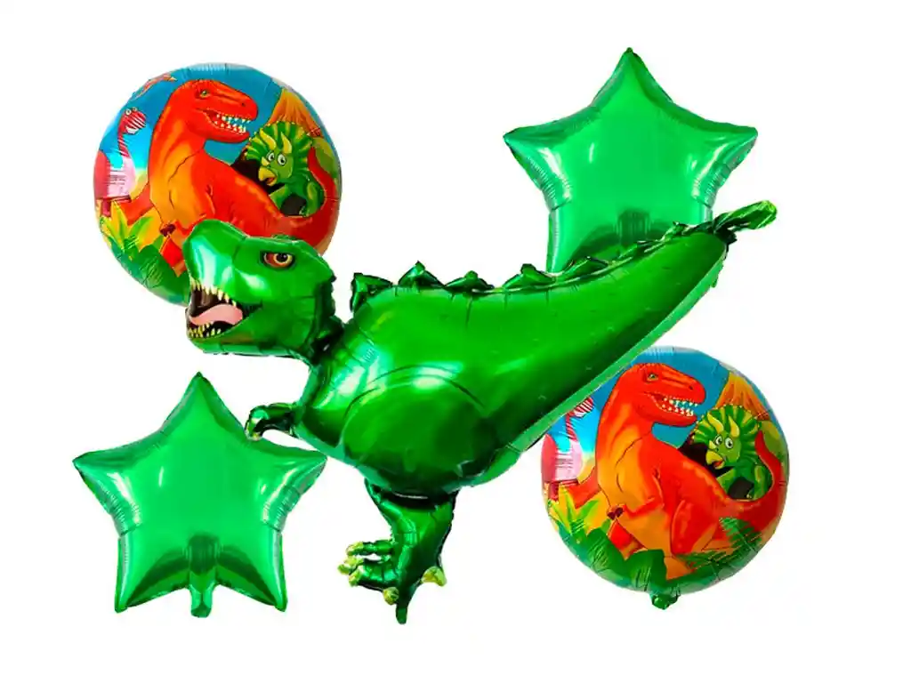 Set de Globos Dinosaurio x 5 1 Globo Dinosaurio Verde 2 Globos redondos Dinosaurios 2 Estrellas verdes Disponibilidad inmediata nota: Globos sin inflar
