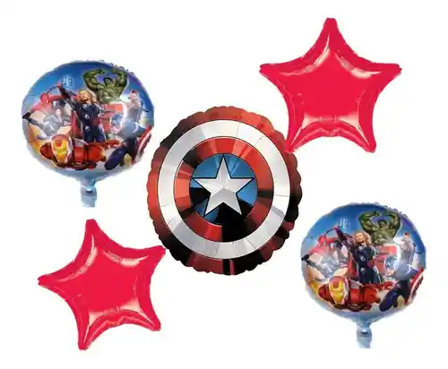 Set De Globos Metalizados De Capitan America X 5 Cumpleaños Kit de Decoración x 5 capitan America set de 5 globos 45 cm 18" 2 estrellas 2 Globos redondos de Avengers 1 Globo principal capitan america producto Disponible para envia inmediato