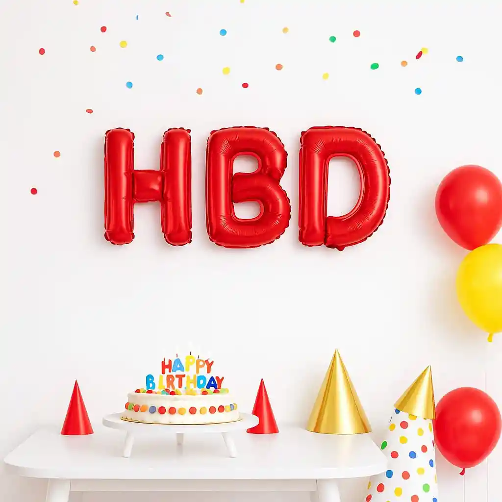 Set De Globos Metalizados x3 Letras HBD Rojo (HAPPY BIRTHDAY) Cada Letra mide: 16 Inch (40.64)cm Color: Azul Metalizado Nota: •Los GLOBOS se entregan Desinflados •Se pueden Inflar con Helio