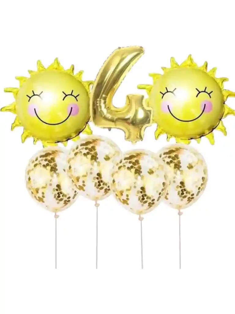 Set De Globos De Sol Numero Cumpleaños, Fiesta, Celebración x 7 Kit para celebracion de cumpleaños aniversario fiesta contenido: 2 Globos de sol 39*47 cm c/u 1 numero ( a elección ) metalizado dorado 80 cm 4 globos Latex R12 con confeti dorado INDICAR POR MENSAJE AL MOMENTO DE TU COMPRA QUE NUMERO QUIERES... EN CASO DE NO HACERLO SE ENVIARÁ UN NUMERO ALEATORIO disponibilidad inmediata nota: los Globos se envían sin inflar