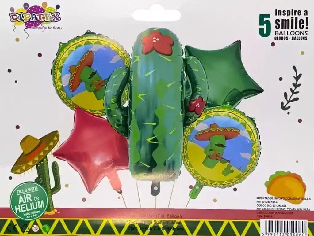 SET DE GLOBOS X5 CACTUS MEXICANO