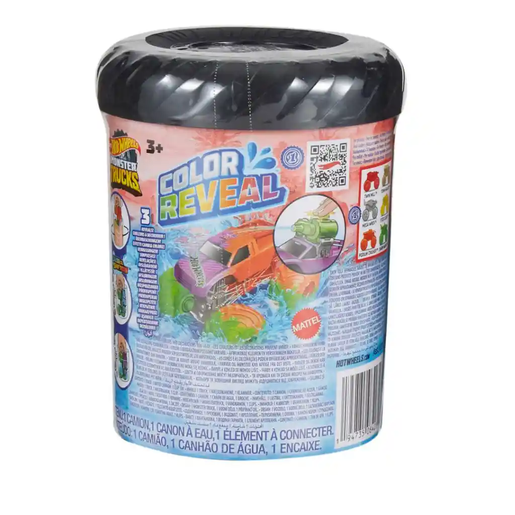 America Store te trae Set De Hot Wheels Monster Trucks Color Reveal HJF39 Cada vehículo de juguete de la colección Color Reveal de Hot Wheels Monster Trucks, te ofrece emoción y sorpresa. Dentro de cada cilindro hay una camioneta modelo Color Shifters de Hot Wheels Monster Trucks que trae el recubrimiento especial Color Reveal, además de un recubrimiento de limpieza y un tanque de agua que puede acoplarse. Para la revelación inicial del juego, llena el cilindro con agua y haz un giro (o más) con la camioneta en el agua hasta que esta cambie de color. Luego, saca la Monster Truck para revelarla con todos sus coloridos detalles. ¿Quieres volver a cambiar su apariencia? Llena el cilindro con agua helada y sumérgela para ver cómo cambian los colores mágicamente. Este fabuloso camión de Hot Wheels es un excelente regalo para niños y es ideal como regalo de cumpleaños o regalo de navidad. ¡Encuentra una gran variedad de juguetes para niños como carros, accesorios, sets de juego y mucho más! Recomendado para niños mayores de 3 años.