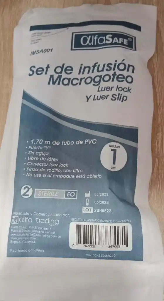 SET DE INFUSIÓN MACROGOTEO PAQUETE X 1.