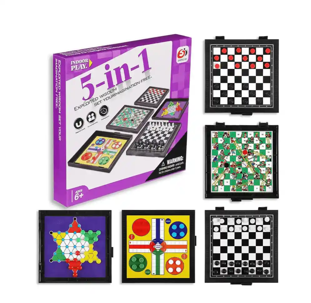 Juego de mesa magnético 5 en 1, juego de viaje por carretera y vuelo, elementos esenciales magnéticos de ajedrez de viaje para viajes, camping, actividades de fiesta, juego para adultos y adolescentes Juego 5 en 1: este juego de juegos de mesa de viaje incluye damas chinas, ajedrez, serpiente y escalera, damas, ludo, todo incluido en la caja para un fácil juego y transporte Ideal para viajes: los juegos de viaje magnéticos son una opción ideal que mantendrá a tus niños y niñas entretenidos durante horas y pasarán eficazmente a través de largos viajes aburridos por carretera o vuelo; su tamaño total es de aproximadamente 6.2 pulgadas, compacto y portátil Juguete intelectual: los juegos de viaje para adultos y adolescentes son un gran juguete interactivo y educativo que ayuda a desarrollar la inteligencia y promover el razonamiento espacial y el pensamiento lógico; también mejoran las relaciones familiares y acercan las relaciones entre sí Diseño práctico: el tablero de ajedrez es magnético, lo que puede hacer que las piezas se peguen firmemente, no se deslice ni se caiga fácilmente, adecuado para su uso sobre la marcha Regalo ideal: juegos de tamaño de viaje para adolescentes con un diseño 5 en 1, delicado y divertido, ideal para tus pequeños seres queridos en cumpleaños, Navidad, Año Nuevo y otros festivales que vale la pena celebrar
