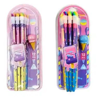 Pequeño combo de lápices con borrador y sacapunta con temática de heladito ideal para tus niñas de la escuela