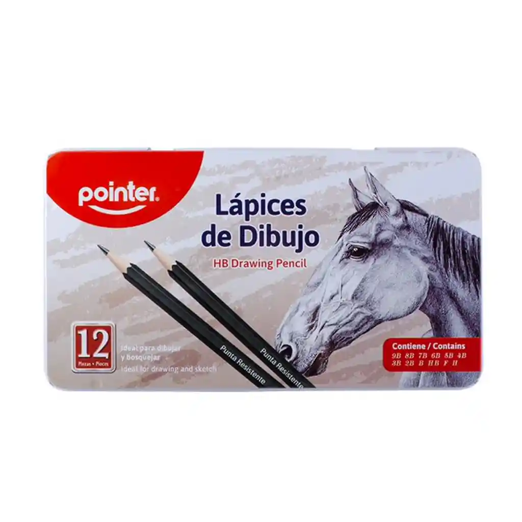 "Set de Lapices de Dibujo Graduados x 12 Unds Pointer Juego de 12 lápices de dibujo 9B, 8B, 7B, 6B, 5B, 4B, 3B, 2B, B, HB, F, H, ideal para dibujar, esbozar, sombrear, lápices de artistas para principiantes y artistas profesionales. Esta gama es ideal para ilustraciones de detalles finos, diarios, dibujos fotorrealistas, bocetos, mezclas, sombreado, manchas y añadir textura. El Lápiz mide 17 cm de largo. Los lápices de dibujo están hechos de material totalmente natural y respetuoso con el medio ambiente – madera. Este kit de 12 lápices de bocetos de calidad profesional pre-afilados Presentación en caja metálica "