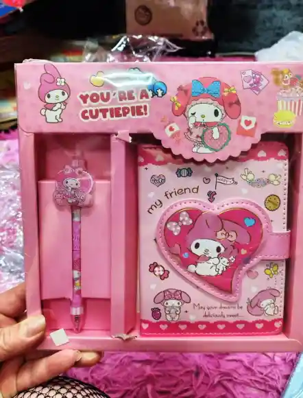 📖🎀 Un adorable set de libreta con lapicero inspirado en My Melody, lleno de ternura y encanto 🌸🐰. Perfecto para escribir tus notas, dibujos o pensamientos con un toque kawaii ✨🖊️. Su diseño delicado y encantador lo convierte en el accesorio ideal para quienes aman la dulzura y la magia de Sanrio 💕📚. ¡Un must-have para tu colección! 🌟💖