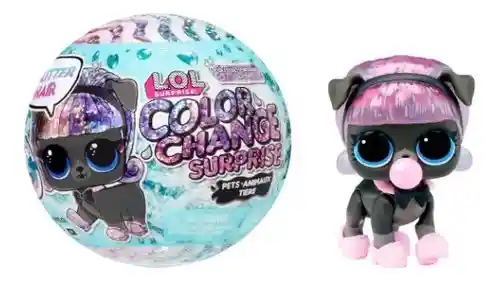 Presentamos la colección LOL Surprise Glitter Color Change Pets! Las mascotas de cambio de color más vendidas están de vuelta con una actualización deslumbrante y una sorpresa de cambio de color completamente nueva. Cada personaje favorito de los fanáticos viene con 5 sorpresas para destapar, que incluyen accesorios feroces, una botella y cabello brillante para una nueva apariencia glamorosa. Comienza tu aventura de cambio de color alimentando a la mascota con agua de su botella y colocando el tapón de burbujas. Gira y sacude a la mascota para ver cómo su cabello brillante se arremolina y cobra vida. Luego sumerge a tu mascota en agua fría o tibia y descubre la sorpresa de cambio de color única de cada personaje. Colecciona las 12 mascotas y sus familias cuando encuentres a la hermana mayor y a la pequeña de cada chica estrafalaria en las colecciones LOL Surprise Glitter Color Change Doll y LOL Surprise Glitter Color Change Lil Sis. De venta por separado.
