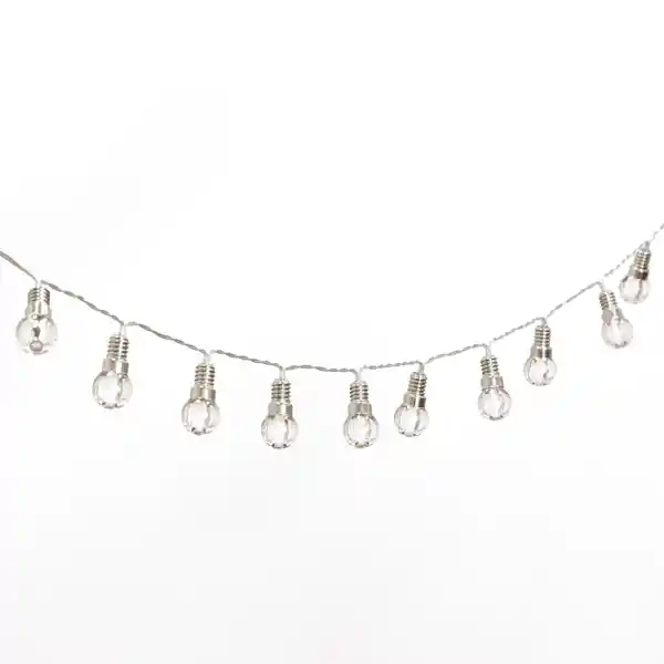 Set Casaideas Con 20 Unidades. Luces Con Ampolletas Pequeñas. Incluye 20 Luces. Tiene un Tamaño de 2.2 Metros. Composición: Aluminio Poliestireno Otros. ''En Casaideas Encontrarás Artículos de Diseño. Para Vivir Día a Día en un Espacio Que te Haga Feliz.''