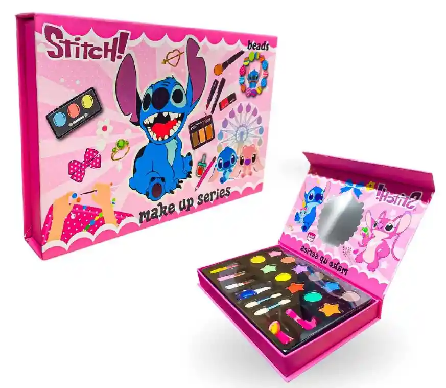 ¡El set de maquillaje infantil más tierno y completo del mercado! Si buscas el regalo perfecto para una niña, este Kit de Maquillaje Stitch es ideal: hermoso, seguro, práctico y con un diseño que encanta desde el primer vistazo. Este set incluye sombras de colores vibrantes, labiales, rubor, brochas, espejo integrado y estuche de lujo con cierre imantado. Todo organizado en dos niveles para que la niña pueda jugar, aprender, crear y desarrollar su imaginación. Perfecto para cumpleaños, Navidad, Día del Niño, detalles especiales o para mini fashionistas que aman el maquillaje. BENEFICIOS QUE ENAMORAN A LAS NIÑAS Y A LOS PADRES 1.Estuche de lujo con diseño stitch Ilustraciones tiernas, coloridas y modernas que hacen del set un accesorio coleccionable. 2 Incluye espejo incorporado Ideal para maquillarse sola y jugar a ser toda una profesional. 3.Cierre magnético seguro Fácil de abrir y cerrar, evita derrames y mantiene los productos protegidos. 4 Más de 18 colores vibrantes Sombras suaves, labiales mini, rubor y accesorios de aplicación. 5.Ideal para juego creativo Ayuda a desarrollar habilidades de motricidad fina, imaginación, creatividad y confianza. 6.Seguro para niñas Material cosmético infantil (no tóxico, apto para piel infantil).