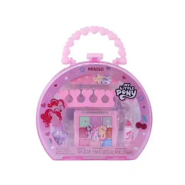 Descubre la Aventura de my Little Pony en Miniso! Adquiere Este Lindo Kit de Maquillaje Para Niña y Vive la Magia de Equestria Con Tus Ponis Favoritos Perfecto Para tu Rutina Diaria! Vienen en un Lindo Estuche Con Detalle de Asa Móvil en Parte Superior Ilumina tu Mundo Con la Magia de la Amistad! Cada Aplicación te Hará Brillar Con la Dulzura y el Encanto de Equestria es Hora de Desatar tu Magia Cosmética! Contiene 1 Lápiz Labial 1 Paleta de Sombras 1 Esmalte Para Uñas 1 Anillo Ficticio 1 Separador de Dedos y 1 Lima Para Uñas el Kit Completo Para Cualquier Ocasión! Cada Elemento de Este Set ha Sido Diseñado Pensando en la Diversión y la Seguridad de Las Pequeñas Exploradoras de la Belleza. Los Mejores Elementos Para Tus Princesas Las Encontraras Aquí!.