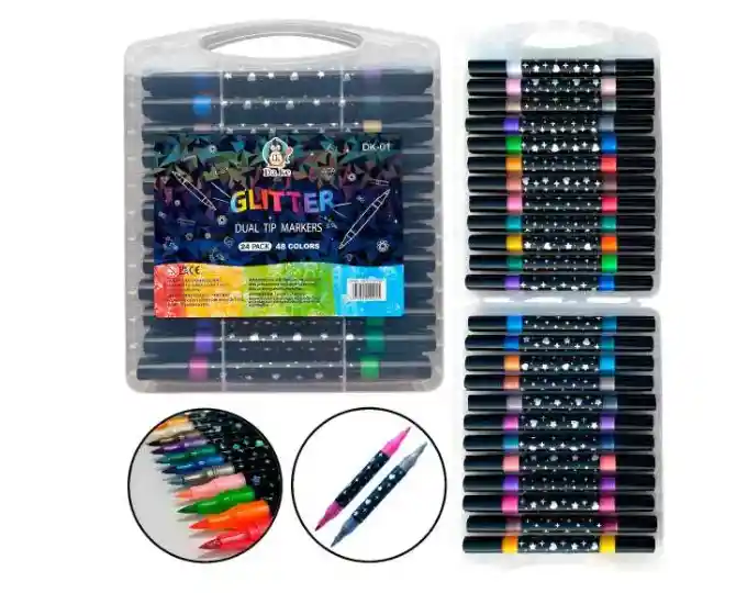 ¡Bienvenido a Tecno Genuinos – Tecnología del Futuro al Alcance de Tu Mano! Somos expertos en artículos de tecnología, belleza y hogar, seleccionados con altos estándares de calidad y trayectoria comprobada. Compra con confianza y recibe productos garantizados y 100% originales. ¡Entregas inmediatas en Bogotá y envíos a todo el país! Dale un toque de brillo a tus creaciones con este completo kit de marcadores con brillo! Incluye 24 marcadores de doble punta con punta pincel, que ofrecen 48 colores vibrantes con un acabado brillante, ideales para estimular la creatividad de niños y adultos. Perfectos para: colorear, crear dibujos brillantes, escribir mensajes creativos y decorar tarjetas con estilo. Cada marcador tiene una punta de doble pincel de 0,9 mm, que proporciona trazos de aproximadamente 2 mm, siempre suaves, uniformes y llenos de vida. Características: - 48 colores con purpurina para tus creaciones artísticas y escolares; - Punta de doble pincel de 0,9 mm: trazos expresivos y suaves; - Trazos de 2 mm, perfectos para detalles y rellenos; - Estuche de plástico transparente, práctico y resistente; - Tinta de secado rápido y larga duración; Perfecto para quienes buscan color, brillo y creatividad. Contiene: 1 estuche con 24 marcadores de doble punta con purpurina en 48 colores. Antes de Comprar, Ten en Cuenta: • Lee detenidamente la descripción completa del producto. • Verifica los términos y condiciones de garantía. • Asegúrate de que sea el producto adecuado para ti y así evitar devoluciones.