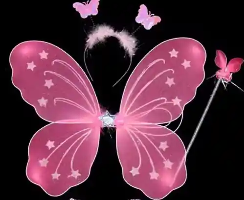 🦋 Set de Mariposa Rosa – Alas + Varita + Diadema / Disfraz Halloween y Fiesta 💫 Convierte cualquier ocasión en un momento mágico con este set de mariposa rosa, perfecto para disfraces, fiestas temáticas, presentaciones o Halloween. Su diseño tierno y brillante hará que las pequeñas se sientan como verdaderas hadas o mariposas encantadas. ✨ Incluye: 🪽 Alas de mariposa color rosa con detalles brillantes. 🎀 Diadema con antenitas decorativas. 🪄 Varita mágica a juego. 🌸 Características: Talla estándar, ligera y cómoda de usar. Material suave y flexible. Ideal para fiestas, disfraces escolares, Halloween o sesiones de fotos. 💖 Perfecto para lucir un look encantador, dulce y lleno de fantasía.