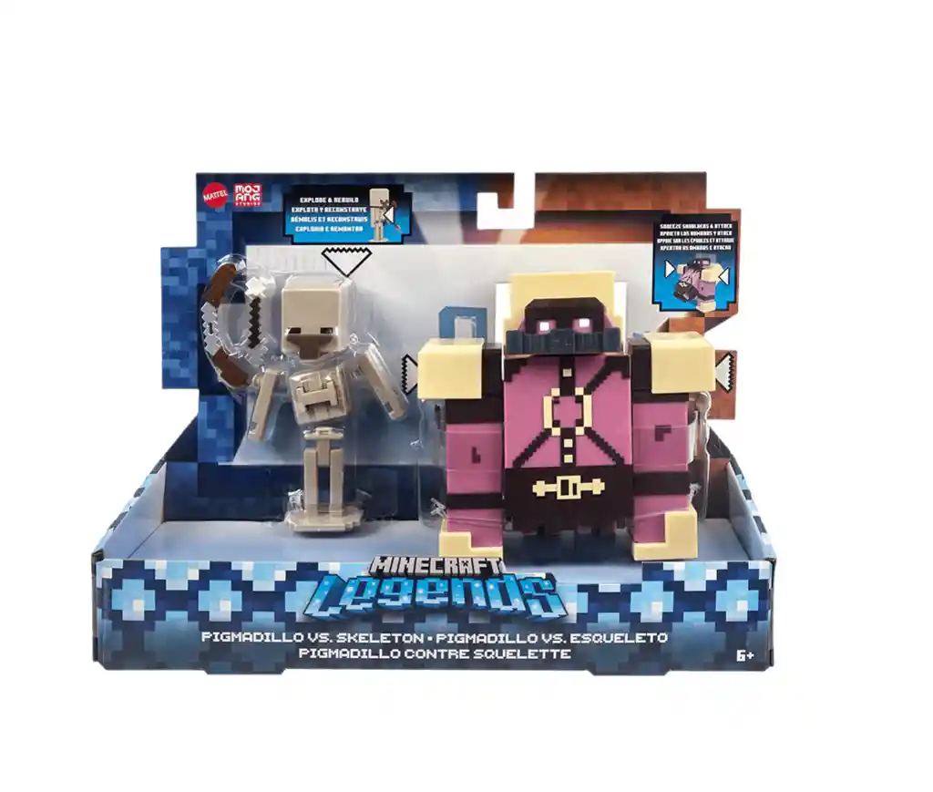 America Store te trae Set De Minecraft Legends Pigmadillo vs Esqueleto GYR98 ¡Une el supramundo con dos figuras Minecraft Legends a escala de 8 cm! Este nuevo par de personajes de figuras de acción para el 2023 son fieles a sus contrapartes de videojuegos de Minecraft Legends y cada uno tiene una característica de ataque o reacción para armar impresionantes batallas interactivas. Los fans de Minecraft querrán coleccionarlos todos para jugar y exhibirlos mientras Minecraft presenta a Legends en su mundo de videojuegos creados por los jugadores. Encuentra una gran variedad de juguetes para niños y. niñas como las figuras de Minecraft que tenemos disponibles. ¡anímate ahora y lleva este fabuloso Set Legends Pigmadillo vs Esqueleto. Recomendado para niños mayores de 6 años.