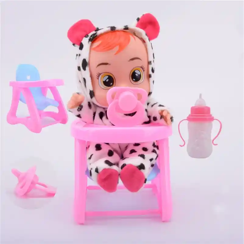 Ella llora lágrimas reales cuando quitas su chupete. Vuelve a poner su chupete en su boca o colócala para que deje de llorar. Ella tiene el cabello arraigado, ojos brillantes y lleva un bonito traje de moda Tamaño del paquete: 13.5 * 18.5 * 9.5 cm