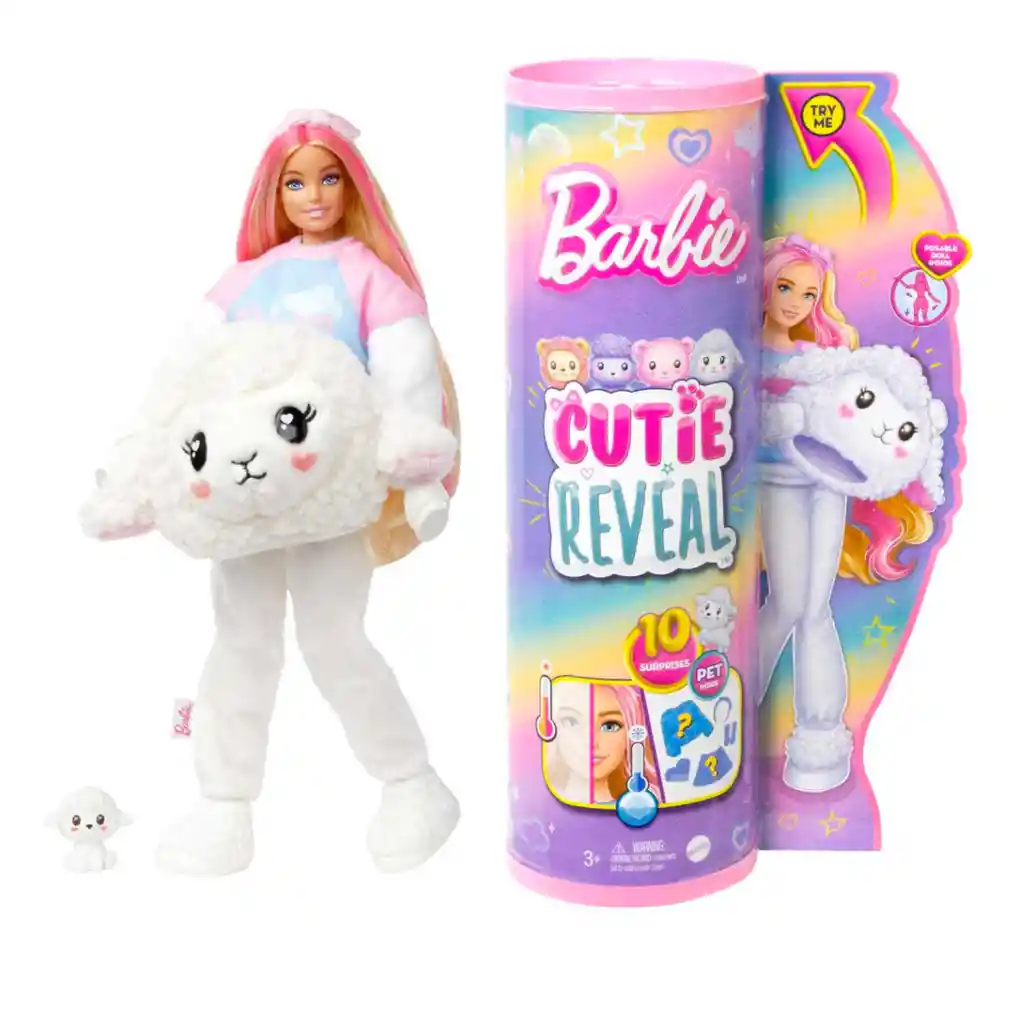 America Store te trae Set De Muñeca Barbie Cutie Reveal Cozy Oveja Hkr03 Detalles del producto Abrir la caja de las muñecas Barbie Cutie Reveal Cozy Cute Tees será una experiencia espectacular. ¡Hay diez sorpresas diferentes! Descubre a un dulce corderito que lleva una camiseta con la palabra “Dream” bordada. Quítale el disfraz de peluche y descubrirás una muñeca Barbie articulada con una larga y colorida melena. Acomódate y descubre más sorpresas, como una diadema, una falda satinada y una minimascota a juego. Dale la vuelta a la parte superior del disfraz de peluche para convertirlo en una chaqueta polar y usa la cabeza como una cama para mascotas. El agua muy fría hace que el pelo de la muñeca y la minimascota sean aún más adorables, ya que cambian de color, y el agua caliente los devuelve a su color original para que la diversión se repita. A niños y niñas les encantará descubrir todas las encantadoras sorpresas de la serie más cómoda y adorable de Barbie Cutie Reveal. Incluye una muñeca vestida con un disfraz de animal y 10 sorpresas.