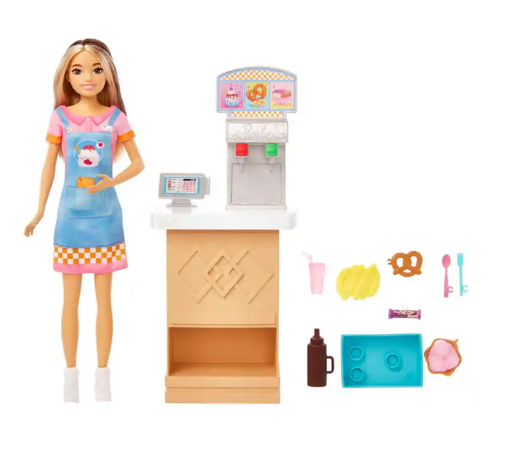 America Store te trae Set De Muñeca Barbie Skipper Barra de Snacks Hkd79 Detalles de producto Las muñecas y juegos Barbie Skipper First Jobs permiten a las niñas explorar el mundo laboral con la hermana adolescente de Barbie. Inspirado en la película Skipper y la gran aventura de la niñera, este juego construye el currículum del muñeco Skipper con un trabajo como encargado de un bar. Sirva diversión en el mostrador con un helado que cambia de color y más de cinco accesorios adicionales que incluyen más refrigerios y una bandeja para llevar. La muñeca no puede estar sola. Los colores y decoraciones pueden variar. * El muñeco Skipper explora el mundo laboral con una serie de Primeros trabajos en Skipper y la gran aventura de cuidar niños, ¡y los niños pueden darle vida a la acción con este juego de snack bar! * El set de Barbie presenta a la muñeca Skipper con su uniforme inspirado en la pantalla, un mostrador de refrigerios con máquina de helado suave y registradora, un helado que cambia de color y 8 accesorios narrativos adicionales.
