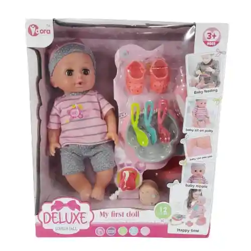 SET DE MUÑECA MY FIRST DOLL 12 SONIDOS Tierna y adorable Muñeca Baby con 12 Sonidos ideal para que los pequeños vivan una experiencia mágica y divertida, jugando y recreando experiencias del cuidado de la familia con amor y responsabilidad. Edad Recomendada +3 años