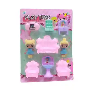 Divertido set de muñecas “Playtime” ideal para que los niños creen sus propias historias. Incluye dos mini muñecas y una encantadora sala con muebles como sofá, sillas, y otros accesorios decorativos. Su diseño colorido y compacto lo hace perfecto para jugar en casa o llevar a cualquier lugar. Diseño y tonos llamativos Estimula la imaginación y el juego creativo - Material: plástico - Edad: 3 años en adelante - Colores y estilos sujetos a inventario