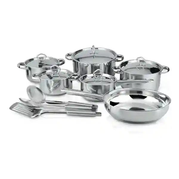 Juego de ollas en acero inoxidable 15 piezas . Este completo set de cocina incluye 15 piezas que harán de tu cocina un lugar especial. Ahorra tiempo en la cocción de tus alimentos, base con difusor de calor que te ayuda a cocinar de forma más rápida y con menos temperatura. La superficie es en acero inoxidable, esta no reacciona ni altera los sabores naturales de tu comida. Son aptos para todos los fogones: gas, eléctrico, cerámico, halógeno y de inducción, fácil de limpiar y muy duraderos. Prepara las recetas favoritas de tu familia con las maravillosas ollas de Renahouse. Cocina como un profesional. juego de ollas en acero inoxidable 100% de alta calidad. Ollas especiales para parrillas de inducción y/o estufa normal. Función de ahorro de tiempo con base súper encapsulada para un calentamiento uniforme. Fácil de limpiar. El conjunto incluye: 1 olla de 16cm con tapa 1 cacerola de 16cm con tapa 1 olla de 18cm con tapa 1 olla de 20cm con tapa 1 olla de 24cm con tapa 1 sartén de 24cm con tapa 3 accesorios de cocina (cucharones de diferentes usos).