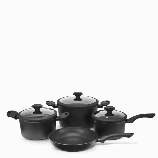 Set Contiene 4 Unidades. De Ollas y Sartenes en Aluminio Forjado Vienen Tres Ollas Con Tapa y Dos Sartenes Todos Son Antiadherente.