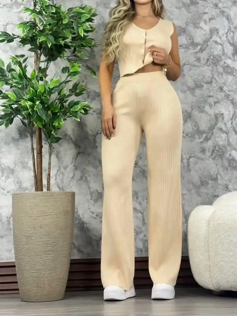 set de pantalon y chaleco en hilo, talla unica con muy buena elongacion, sirve desde una talla S una talla XL
