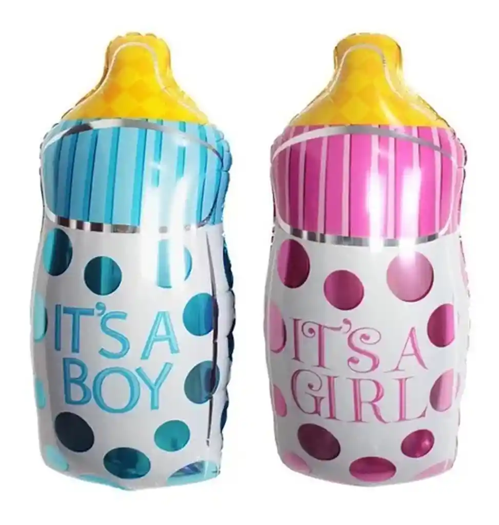 *********************GLOBOS Y PELUCHES MASMELO********************* Por tu compras llevas: 2 Globos Biberon Tetero Baby shower uno de niño y uno de niña de 20x39cm *Los globos se entregan desinflados, tu compra no incluye el montaje ni la decoración, el servicio de armado no lo tenemos disponible. sin embargo te damos todas las instrucciones para hacer de modo profesional. Si deseas adicionar otros articulos a tu compra puedes escribirnos, recuerda que Somos Globos y Peluches Masmelo ;) - En ciudades fuera de Bogotá despachamos para el mismo día si compras antes de las 11AM (no incluye festivos) - En Bogotá despachamos para el mismo día, si haces el pedido antes de las 4PM (no incluye festivos)