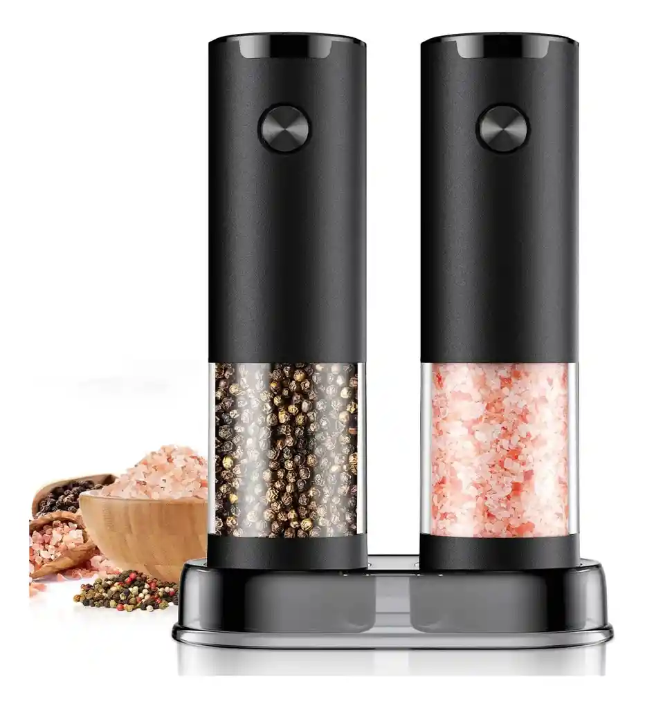 Juego de molinillo de sal y pimienta eléctrico, molinillo de pimienta automático a batería, grosor ajustable, fácil llenado, capacidad mejorada y mayor capacidad con LED