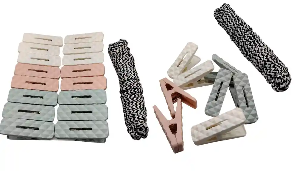 Producto: Set de Pinzas para Ropa con Cuerda REF: 427-9877 Set práctico y funcional diseñado para facilitar el secado de ropa en cualquier lugar. Ideal para uso en el hogar, viajes o espacios reducidos. Este kit incluye pinzas resistentes y una cuerda portátil que permite colgar prendas de manera segura y organizada. Perfecto para optimizar el espacio y mantener la ropa firme mientras se seca, evitando que se caiga o se desplace con el viento. Su diseño compacto lo hace fácil de transportar y almacenar. Desarrollado para brindar comodidad, practicidad y durabilidad en el uso diario. CARACTERÍSTICAS: Color rosado 18 cm de largo x 12 cm de alto Incluye 16 pinzas resistentes Incluye cuerda para colgar ropa Material duradero y reutilizable Fácil de transportar Ideal para viajes y uso en el hogar Condición del producto: Nuevo ¿QUÉ INCLUYE TU PRODUCTO? Set de pinzas para ropa con cuerda (16 pinzas + cuerda para tender) Práctico organizador portátil para secado de prendas Ideal para interiores y exteriores Producto funcional para el hogar MMMMMMMMMMMMMMMMMMMMMMMMMMMMMMMMMMMMMMMMMMMMMMMMM MÁS DETALLES: Condición: Nuevo MAS INFORMACIÓN DE NOSOTROS Somos INVERSIONES MAZUGI. Importadores directos desde china Cumplimos con distribuir a todo el país. Estamos ubicados en Bogotá, somos tienda virtual y física PRODUCTOS AL POR MAYOR Y DETALLE Somos una empresa importadora y comercializadora de productos de Alta Calidad de varias categorías como: belleza, tecnología, hogar, juguetería, cuidado personal, entre otras.