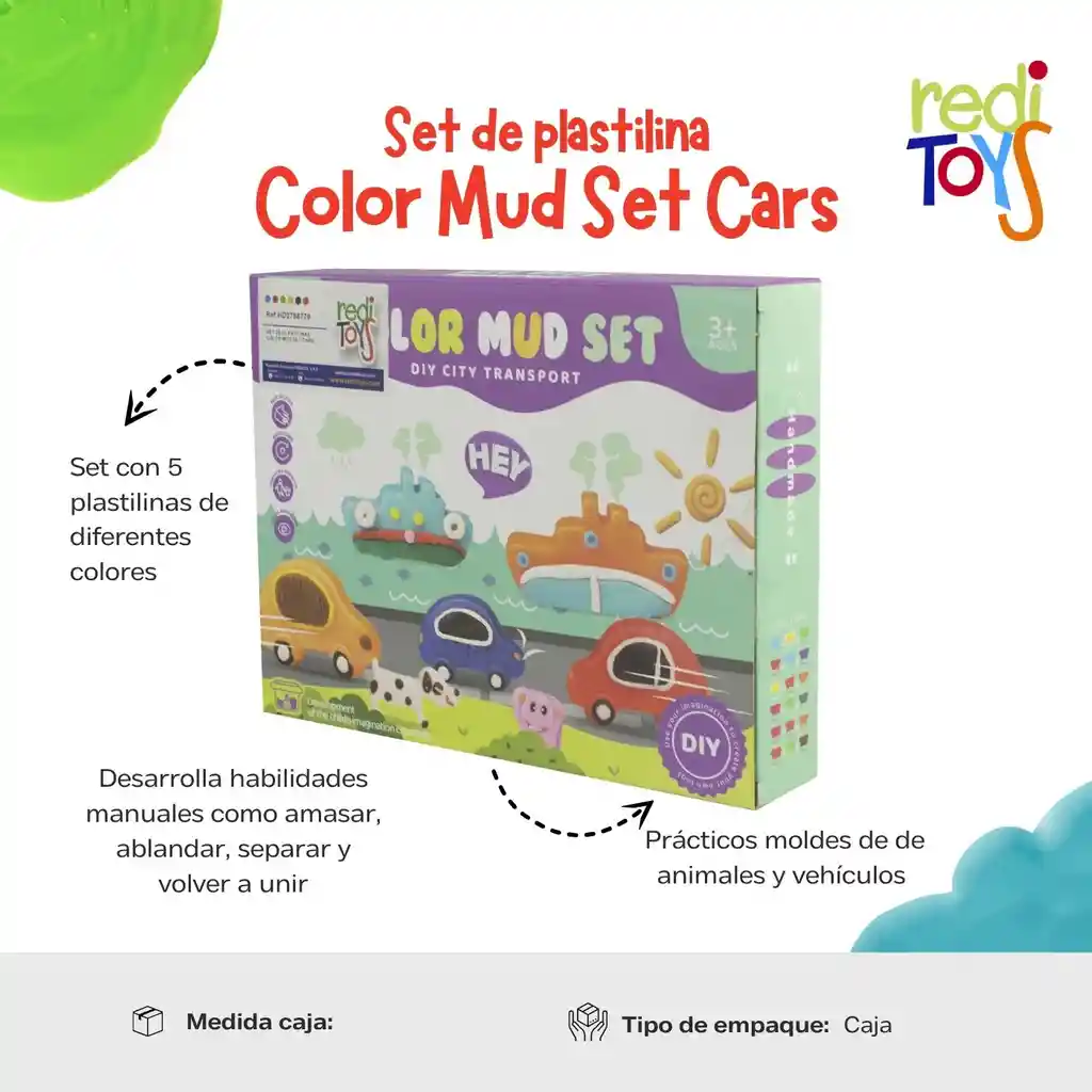 Set con 5 plastilinas de diferentes colores, prácticos moldes de animales y vehículos para motivar el aprendizaje durante el juego Desarrolla habilidades manuales como amasar, ablandar, separar y volver a unir. Incentiva la creatividad, mejora la coordinación viso-manual y ejercita la memoria.