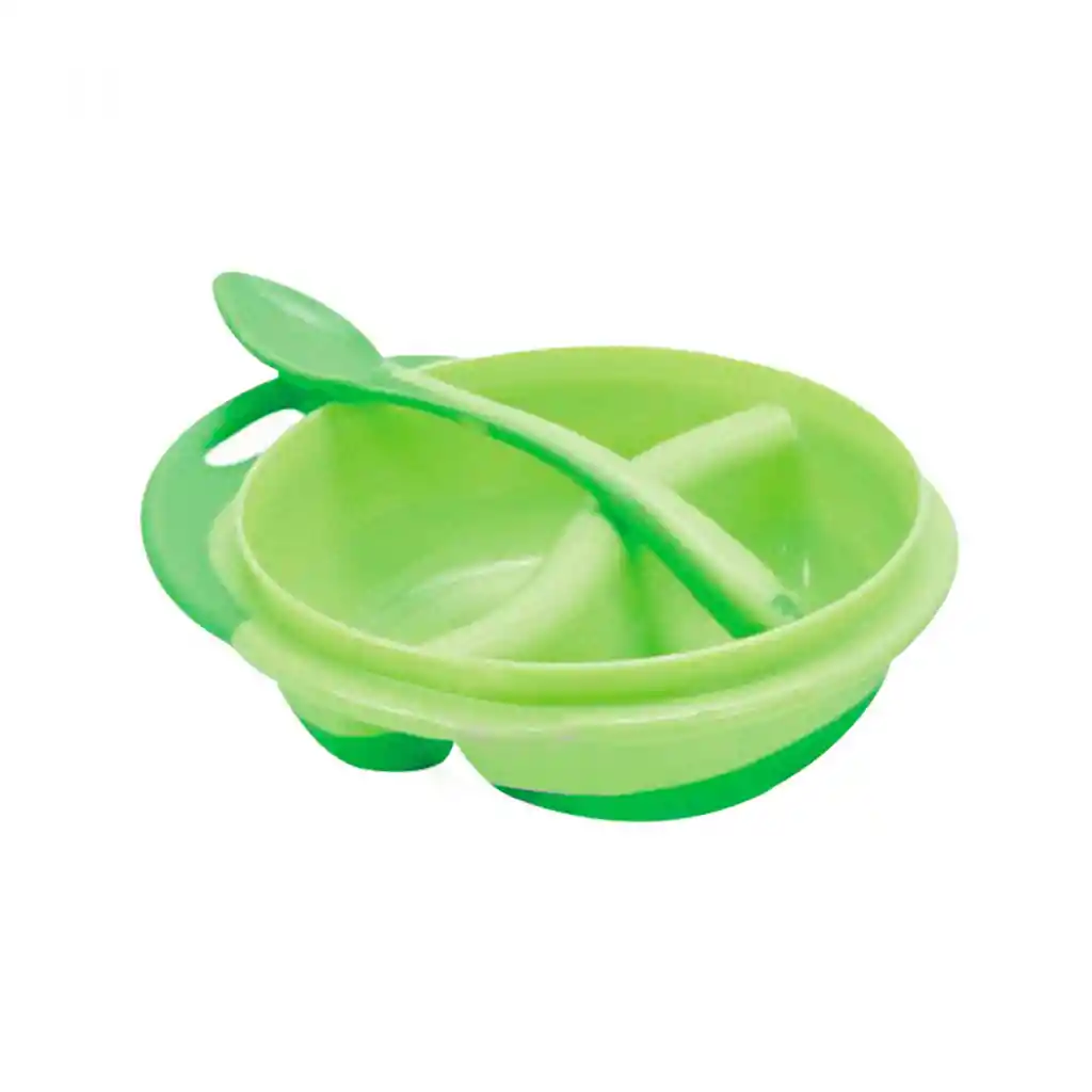 Set De Plato The First Years Dividido Y Cuchara Color Verde X 1 Unidad