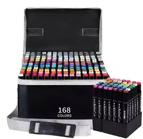 Set De Plumones 168 Marcadores Touch Plumones Doble Punta Reconocimiento rápido del color: 168 rotuladores de dibujo con tapas codificadas por colores que permiten identificar rápidamente los colores, mejorando la eficiencia de pintura. Los marcadores son confiables, permanentes y no tóxicos.