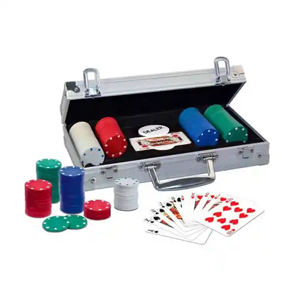 Incluye 200 fichas de póquer de dos tonos Una baraja de cartas de poker más fichas del crupier Alojado en un hermoso y resistente estuche de aluminio Un juego para llevar a cualquier parte para los jugadores de poker de su familia Instrucciones completas para Texas Hold'em Tamaño = 31 X 23 X 7 Centimetros