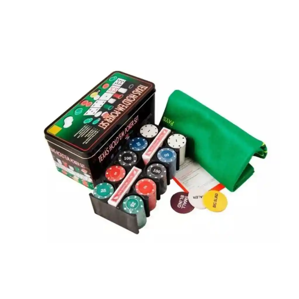Somos TELEPRODUCTOS BOGOTA Productos 100% garantizados, años de experiencia en ventas online.! -Cuando realices la compra recibirás toda la información de contacto y datos para que puedas hacer seguimiento a tu producto.! ------------------------------------------------------------------------------------------------------------------------------------- Set De Poker Tipo Casino Texas Hold`em Porta fichas para 200 piezas. Tapete de juego Black Jack 55 x 90 cm 200 fichas 4 cm de diametro barajas de cartas estandar. 3 botones (Dealer, Big Blind y Small Blind). 24cm x 11,5cm x 11cm