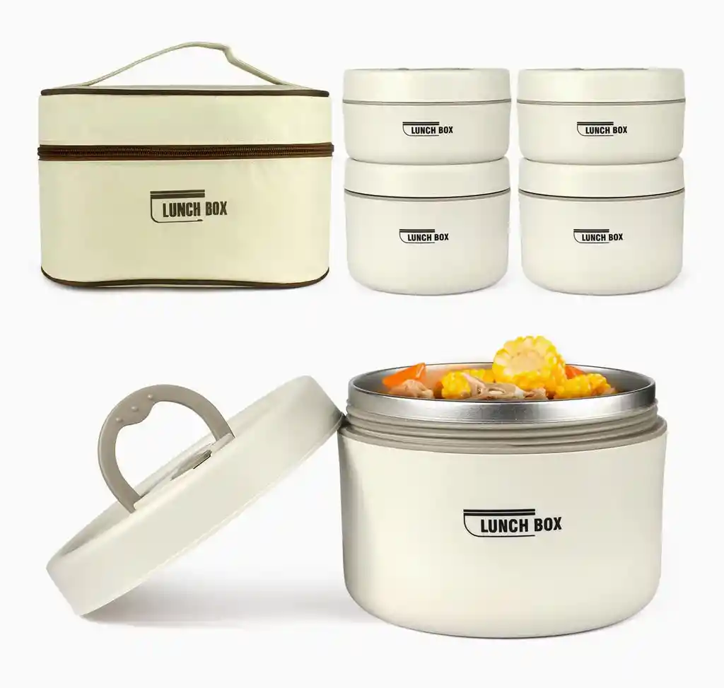 Fácil de mantener. Capa aislante de espuma de PU,aislada de alta densidad a la capa media, lo que hace que la comida se mantenga más caliente que aquellos con capa de vacío. A temperatura ambiente, este termo de alimentos se mantendrá caliente/frío durante de 3 a 4 horas. Bolsa de almuerzo térmica de 3 capas: la bolsa de almuerzo adopta un paño Oxford resistente al desgaste como superficie, a prueba de humedad y algodón de perlas térmico como acolchado y papel de aluminio liso como forro, extendiendo el tiempo térmico a 1 hora más. Nunca mezclar los alimentos: con una tapa separada para cada recipiente, su almuerzo nunca se mezclará. El anillo de silicona mejorado Roud se aplica a cada tapa, y el sello en espiral en lugar del sello de hebilla lo hace completamente hermético y a prueba de fugas. Juego de cajas Bento 5 en 1: recipiente pequeño (13 onzas/1.6 tazas) *2, 2 recipientes grandes (20 oz/2.5 tazas), interior en acero inoxidable que ayuda a mantene sus comidas calientes , 1 bolsa de almuerzo aislada Acero inoxidable 18/10 304: Tanto el tanque del contenedor como los utensilios de la lonchera tiffin están hechos de acero inoxidable 304 con excelente resistencia a la corrosión y a la oxidación.