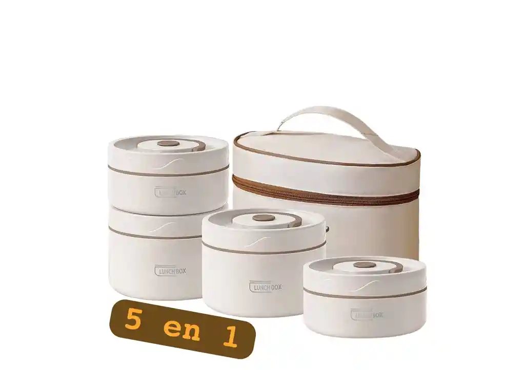 Fácil de mantener. Capa aislante de espuma de PU,aislada de alta densidad a la capa media, lo que hace que la comida se mantenga más caliente que aquellos con capa de vacío. A temperatura ambiente, este termo de alimentos se mantendrá caliente/frío durante de 3 a 4 horas. Bolsa de almuerzo térmica de 3 capas: la bolsa de almuerzo adopta un paño Oxford resistente al desgaste como superficie, a prueba de humedad y algodón de perlas térmico como acolchado y papel de aluminio liso como forro, extendiendo el tiempo térmico a 1 hora más. Nunca mezclar los alimentos: con una tapa separada para cada recipiente, su almuerzo nunca se mezclará. El anillo de silicona mejorado Roud se aplica a cada tapa, y el sello en espiral en lugar del sello de hebilla lo hace completamente hermético y a prueba de fugas. Juego de cajas Bento 5 en 1: recipiente pequeño (13 onzas/1.6 tazas) *2, 2 recipientes grandes (20 oz/2.5 tazas), interior en acero inoxidable que ayuda a mantene sus comidas calientes , 1 bolsa de almuerzo aislada Acero inoxidable 18/10 304: Tanto el tanque del contenedor como los utensilios de la lonchera tiffin están hechos de acero inoxidable 304 con excelente resistencia a la corrosión y a la oxidación.