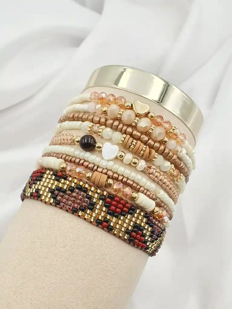 Hermoso Set de pulseras artesanales elaboradas con mostacilla checa y cristal Murano