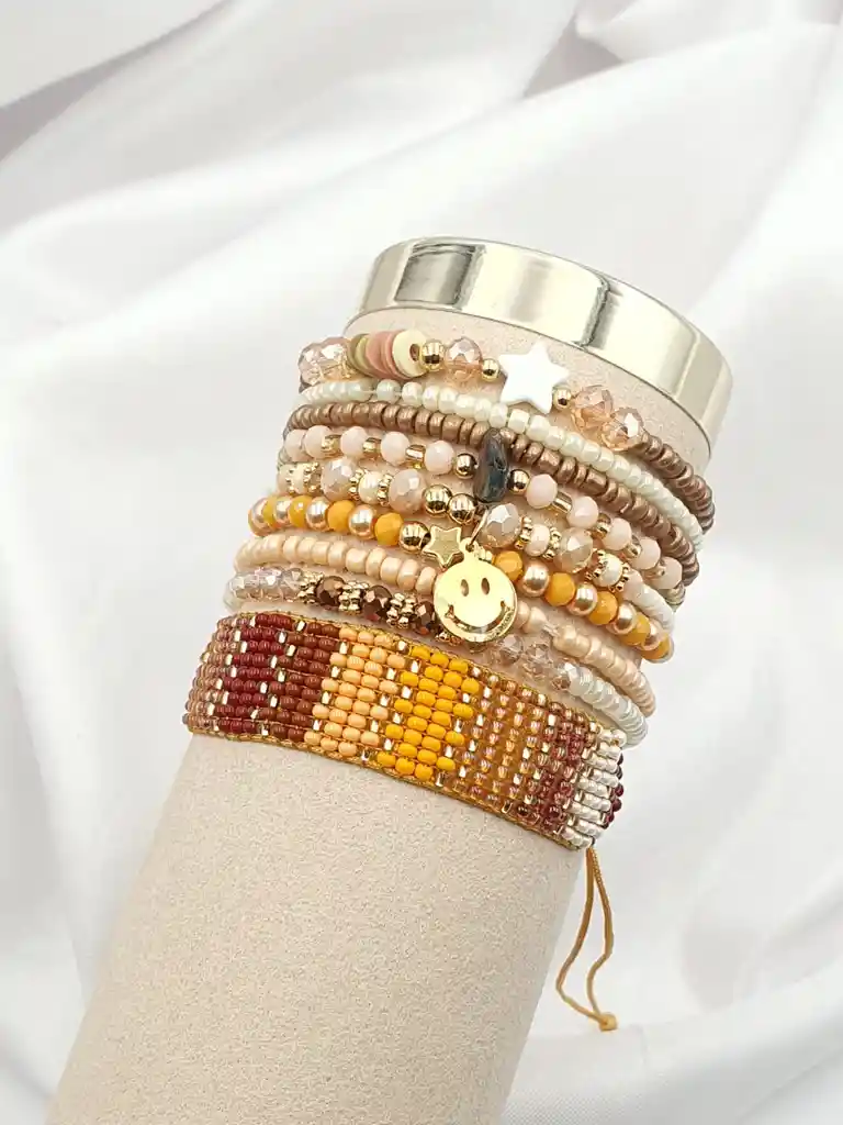 Hermoso Set de pulseras artesanales elaboradas con mostacilla checa y cristal Murano