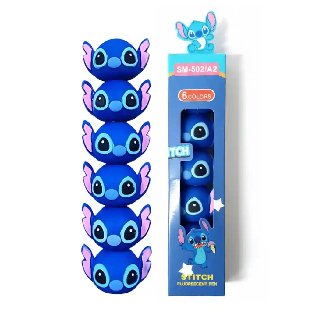 Motivación para estudiar y organizar Estudiar y organizar apuntes se vuelve más llevadero cuando usas herramientas que te gustan. Este set hace que resaltar información sea más entretenido y visualmente agradable. Sus colores intensos ayudan a diferenciar conceptos mientras el diseño apilable mantiene todo ordenado. Ideal para estudiantes que buscan motivación extra en su rutina. Funcionalidad y diversión en un solo producto. Pensado para usar todos los días sin aburrirse. Especificaciones Resaltadores fluorescentes apilables Stitch, fabricados en plástico resistente, color azul, tipo resaltadores escolares y creativos, dimensiones aproximadas del set 12 cm de alto x 4 cm de ancho x 4 cm de largo, peso aproximado 90 gramos. Incluye 5 resaltadores apilables tipo cabeza de Stitch en distintos colores. Garantía 30 días por defectos de fabricación. Política de Retracto 5 días hábiles desde la recepción del producto, siempre que esté completo y sin uso. Nota Importante Si el producto llega golpeado o con piezas faltantes, repórtalo en las primeras 24 horas a la transportadora. Para aplicar la garantía, envía fotos y videos donde se evidencie el defecto.