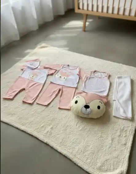 Set De Ropa Bebé Recién Nacida Zorrito Rosado 7 Pzs