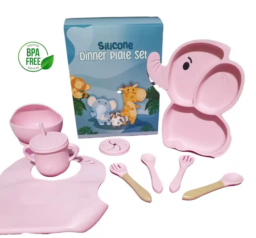 Set de silicona de 8 piezas diseñado para acompañar la etapa de alimentación de bebés y niños pequeños, ofreciendo seguridad, comodidad y practicidad. Elaborado en silicona de grado alimenticio, libre de BPA y ftalatos, es resistente, fácil de limpiar y seguro para el uso diario. Características principales: Incluye plato, bowl, vaso con tapa, cuchara, tenedor, babero, mantel individual y cepillo de limpieza. Silicona suave y flexible que protege encías y dientes. Libre de BPA, ftalatos y sustancias tóxicas. Resistente a altas y bajas temperaturas. Colores atractivos que estimulan el interés del bebé por la comida. Apto para microondas, lavavajillas y congelador (según indicaciones del fabricante). Beneficios de uso: Facilita la transición a la alimentación autónoma. Reduce el riesgo de accidentes gracias a sus bordes redondeados y material antideslizante. Resistente y duradero para uso diario. Ideal para uso en casa o fuera de ella. Especificaciones técnicas: Material: silicona de grado alimenticio. Edad recomendada: desde 6 meses en adelante. Cantidad de piezas: 8 unidades. Contenido del paquete: 1 plato. 1 bowl. 1 vaso con tapa. 1 cuchara. 1 tenedor. 1 babero. 1 mantel individual. 1 cepillo de limpieza. Recomendaciones de uso: Lavar antes del primer uso. Usar siempre bajo la supervisión de un adulto. Evitar cortar alimentos con cuchillos afilados directamente sobre la silicona para prolongar su vida útil.