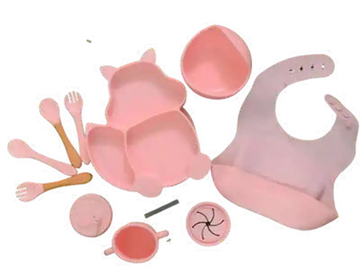 Plato Ardilla Vaso pitillos Babero Bolw Cubiertos en silicona Cubiertos en madera Libre de BPA VERDE MENTA