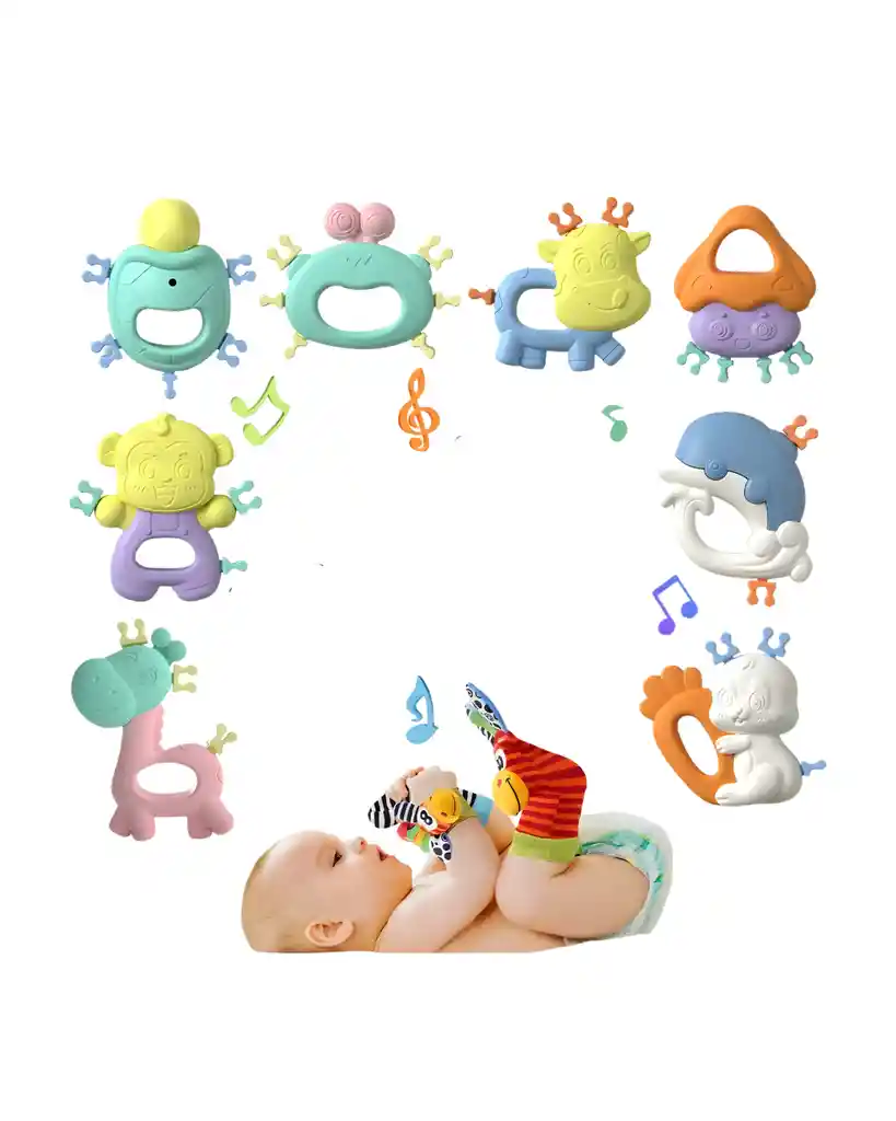 ¡Diversión y desarrollo en cada sonido! Este set de sonajeros color pastel está diseñado para acompañar a tu bebé en sus primeros descubrimientos, estimulando el oído, el tacto y la coordinación. 🔹 Diseño ergonómico y seguro: formas suaves, fáciles de agarrar y sin bordes filosos. 🔹 Sonidos suaves y agradables: ideales para captar la atención sin sobreestimular. 🔹 Colores delicados y figuras amigables: animalitos y formas que invitan al juego. 🔹 Estimulación multisensorial: fomenta la motricidad fina y la curiosidad. 🔹 Empaque práctico y visible: perfecto para regalar o llevar en la pañalera.
