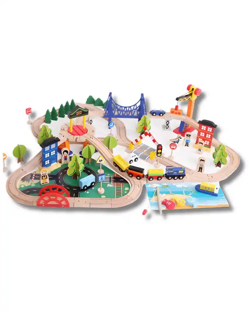 ¡Un mundo entero sobre rieles! Este completo set de tren incluye 108 piezas entre vías, trenes, vehículos, señales, árboles, edificios y personajes, ideal para que niños desde los 3 años construyan su propia ciudad y desarrollen habilidades cognitivas, motoras y sociales mientras juegan. ✅ Estimula la creatividad y el pensamiento lógico ✅ Promueve el juego colaborativo y la narración de historias ✅ Piezas resistentes y seguras, fáciles de manipular ✅ Compatible con otros sets de trenes de madera ✅ Ideal para regalar y acompañar el desarrollo infantil Con Pin8 Toys, cada pieza es una oportunidad para crecer jugando.