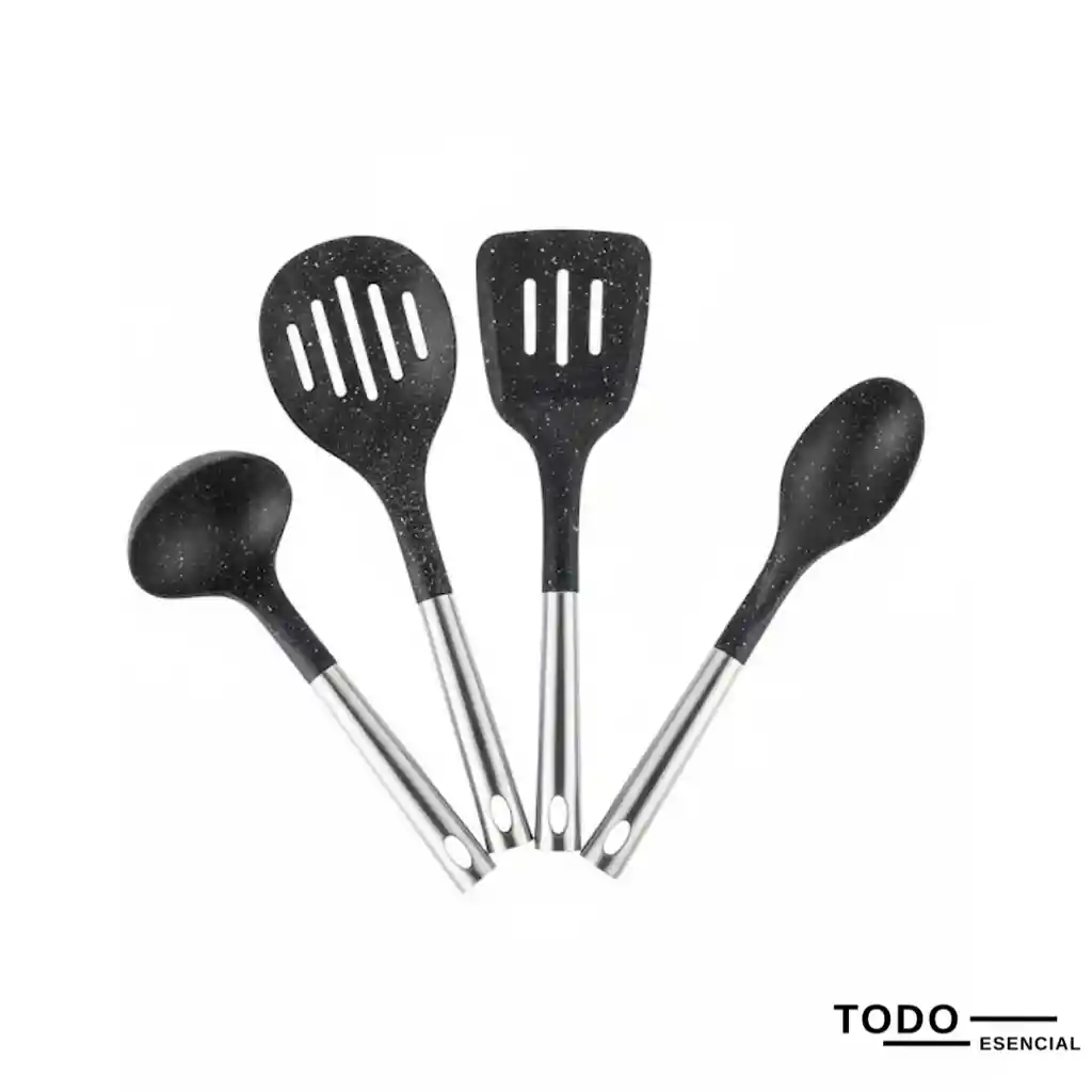 Eleva tu experiencia culinaria con este set de utensilios premium. Combinando la flexibilidad de la silicona de grado alimenticio con la durabilidad del acero inoxidable, estos accesorios son ideales para proteger tus sartenes antiadherentes mientras cocinas con estilo. 🔹 Características y Beneficios: ✅ Acabado Estilo Granito: Cabezales con un diseño moderno de motas blancas sobre negro que aportan un toque sofisticado a tu cocina. ✅ Silicona de Grado Alimenticio: Material resistente al calor, libre de BPA, que no raya ni daña las superficies de tus ollas y sartenes. ✅ Mangos de Acero Inoxidable: Ergonómicos, duraderos y resistentes a la corrosión, diseñados para un agarre cómodo y seguro. ✅ Set Completo de 4 Piezas: Incluye un cucharón para sopas, una espátula ranurada, una cuchara para servir y un servidor de pasta o cuchara calada. ✅ Fácil Almacenamiento: Cada mango cuenta con un orificio para colgar, permitiendo optimizar el espacio en tu cocina. ✅ Fácil Limpieza: Superficies lisas que evitan la acumulación de residuos; aptos para lavavajillas. 🔄 ¡La combinación perfecta entre diseño profesional y practicidad diaria! Ideales para saltear, servir y preparar tus recetas favoritas sin complicaciones."