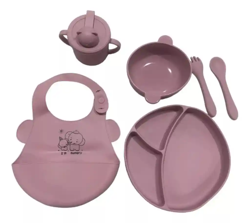 Este juego de vajilla para niños incluye todo lo que necesitas para alimentar a tu bebé de forma segura. DESCRIPCIÓN: Material seguro y fiable: los suministros de alimentación para bebé están hechos principalmente de silicona de calidad, que son seguras y fiables, fuertes y resistentes, suaves y cómodos, no se decoloran fácilmente, desgastan o rompen y sin bordes puntiagudos, por lo que no rayan la delicada piel del bebé. Se sujeta fácilmente: los baberos de silicona para bebé pueden atrapar alimentos durante la comida del bebé, manteniendo la ropa ordenada; el babero de silicona es ajustable para que el bebé pueda obtener un tamaño adecuado ajustando el broche Fácil de limpiar: nuestras cucharas y tenedores de silicona, baberos y platos de silicona no absorben alimentos o agua y son fáciles de limpiar, puedes limpiarlos o enjuagarlos con agua o ponerlos en el lavavajillas para ahorrar tiempo y esfuerzo CARACTERÍSTICAS: * Hecho de silicona de calidad alimentaria. * No tóxico, inodoro, insípido, reutilizable y ecológico. * Resistente al calor, antideslizante, antiderrames y seguro. * Ligero, portátil e irrompible, antiadherente, fácil de lavar. INCLUYE: * 1 Plato para bebés (20 cm x 18 cm aprox.) * 1 Taza (10 cm x 8 cm aprox.) * 1 Pocillo (7 cm x 6 cm aprox.) * 1 Cuchara (14 cm x 3 cm aprox.) * 1 Babero (30 cm x 23 cm aprox.)