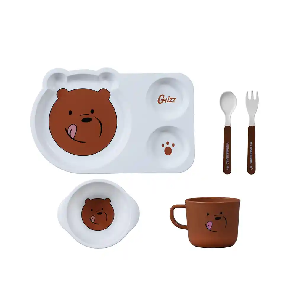Set Miniso Contiene 5 Unidades. Miniso Tiene Para ti Este Lindo Set de Vajilla Del Hiperactivo y Burbujeante Pardo de la Animación we Bare Bears ¡No Sabías Que lo Necesitabas Hasta Que lo Encontraste Aquí! Elaborado en Plástico de Alta Resistencia de Grado Alimenticio. Bandeja Tamaño 27.8 x 17.7 cm Recipiente Tamaño 11 x 4.6 cm Taza Tamaño 6.6 x 7.5 cm Cubiertos Tamaño 13.5 cm. Este Set de Vajilla es Perfecto Para Uso Infantil Ideal Para Que Los Más Pequeños Disfruten de Sus Alimentos Gracias a su Diseño y Materiales es de Uso Seguro y Saludable. Puede Usarse en Microondas no se Recomienda su Uso en Lavavajillas.
