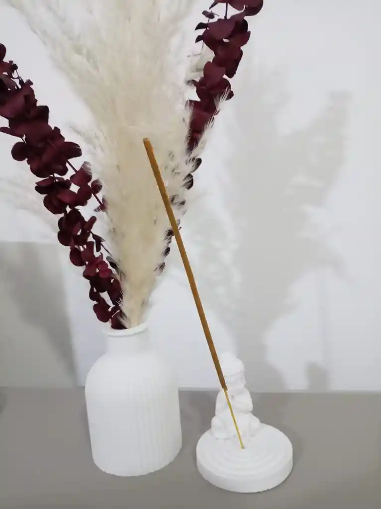 Set Decoración florero + arreglo floral + porta incienso + buda Material florero, buda y portaincienso en concreto color blanco Pampa natural Eucalipto Preservado - no necesita agua duradero