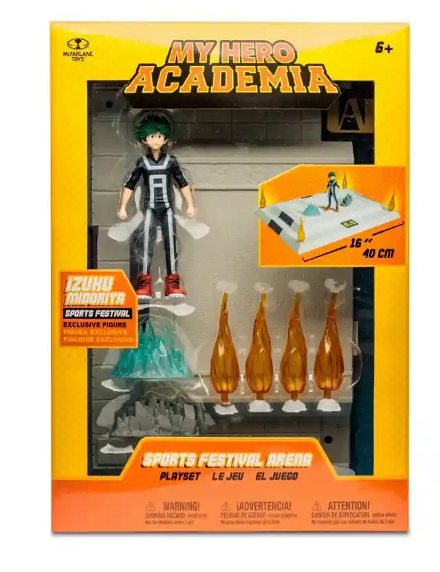 "Un niño que sueña con convertirse en un héroe. Nació sin un don, pero cuando All Might descubre que tiene la capacidad de convertirse en un héroe en su interior, All Might le transmite el don, One For All. Su voluntad de ayudar a los demás es inusualmente fuerte. El juego incluye la Arena del Festival UA, dos logotipos de UA acoplables, cuatro piezas de llama acoplables, una pieza de roca, una pieza de hielo y una figura de 5 pulgadas del Festival UA Midoriya El juego incluye un divertido juguete a escala de 5” basado en el anime My Hero Academia Diseñado con 5 puntos de articulación para el movimiento estándar de la figura de acción La figura se presenta en un blíster con temática de My Hero Academia Colecciona todos los productos My Hero Academia de McFarlane Toys My Hero Academia UPC: 787926901177"