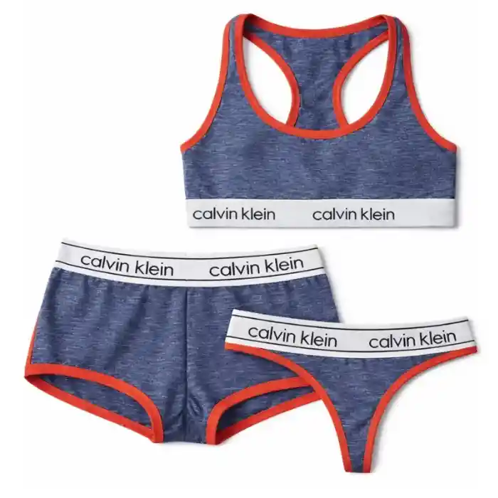 Set Deportivo | Talla M | Calvin Klein Mujer X3 | Top + Bóxer + Tanga | Algodón Elástico | Estilo Urbano